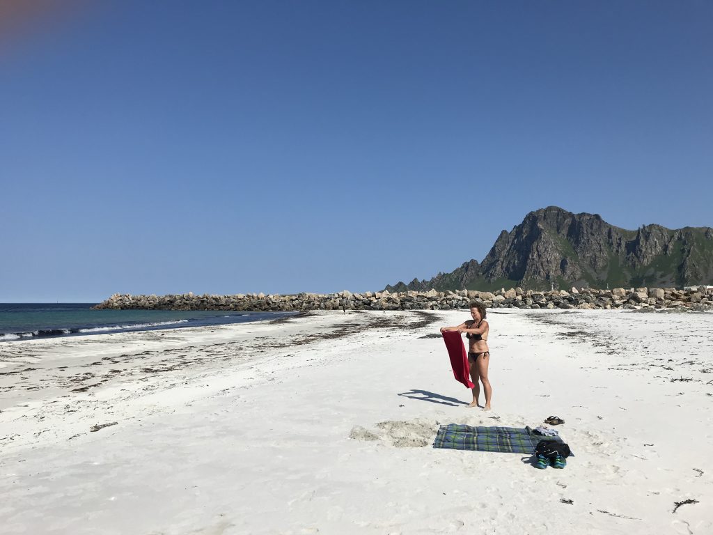 Am nächsten Morgen geht es weiter zum Uttakleiv Beach.