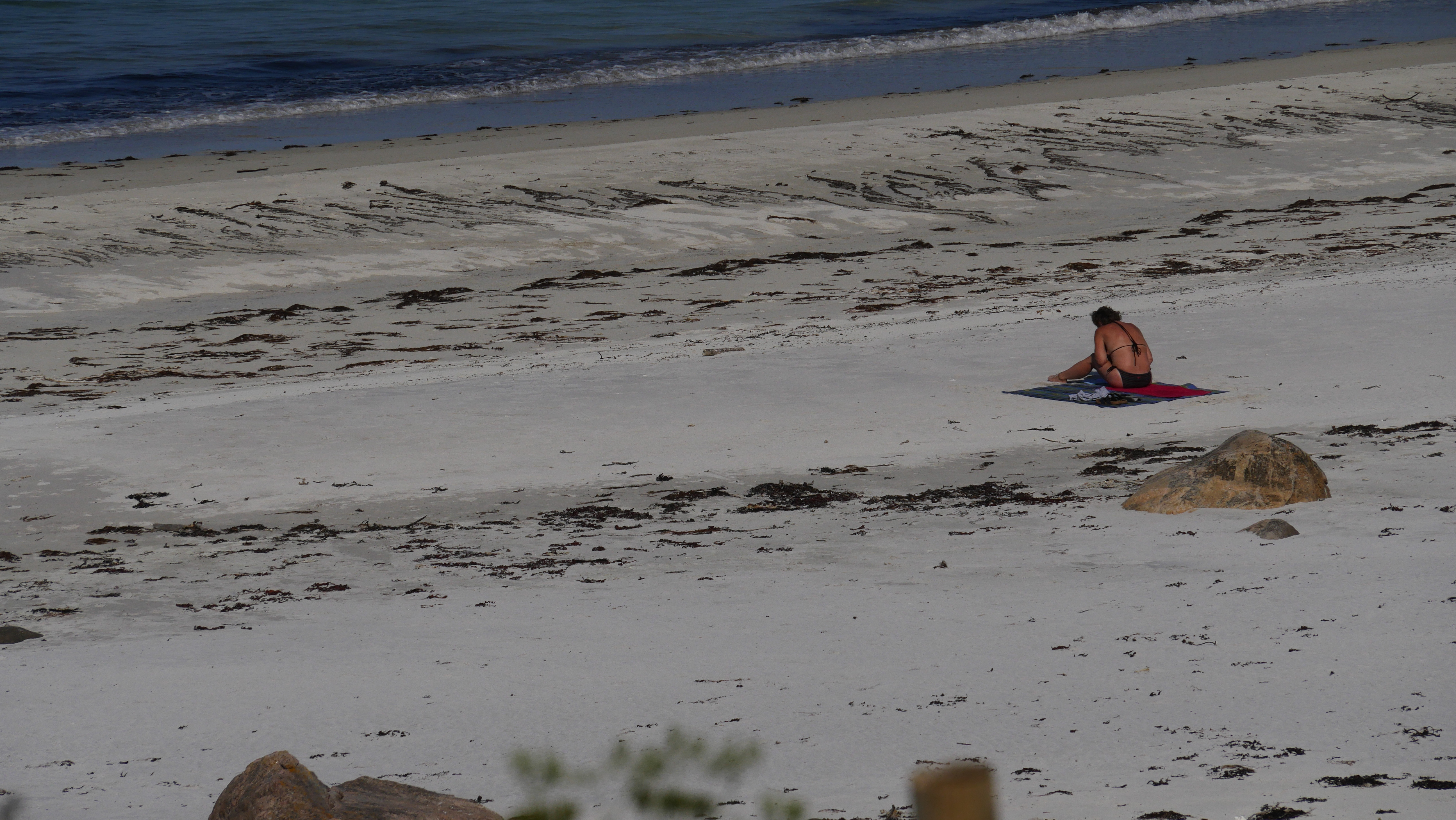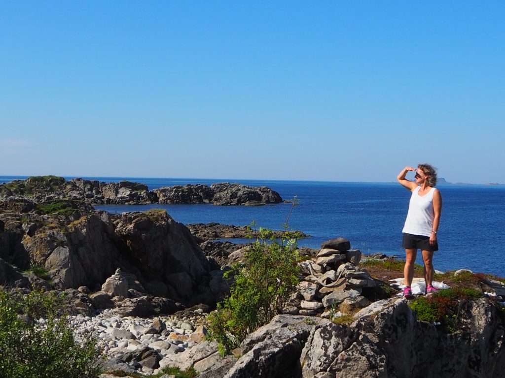 Wir bleiben noch etwas auf Andøya. Petra liegt am Strand, war schon im Wasser und rätselt, ich sitze im Auto, schwitze und schreibe Blog.