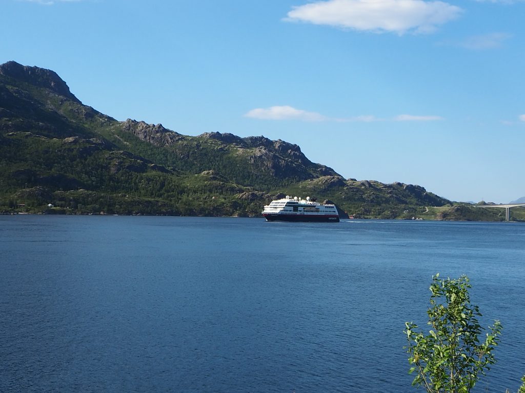 Wir bleiben auch heute noch auf den Vesterålen. Wir fahren von Maurnes, Sortland (Langøya) und Stokmarknes auf Hadesløya, umrunden die Insel, schenken uns die Wanderung (mein Fuss ist immer noch nicht ok.), essen stattdessen Schokokuchen, fahren ein Stück zurück und parken schon um 15 Uhr für die Nacht auf einem netten Platz am Sund.