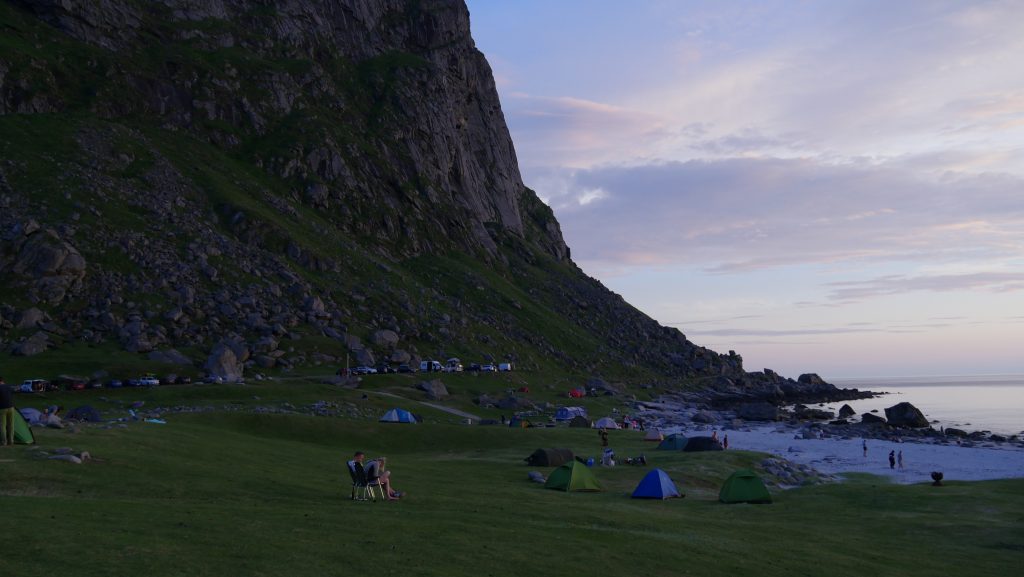 Wir machen einen Abstecher nach Eggum, wo es auch einen schönen Strand gibt, kehren aber doch wieder um und fahren auf die andere Seite der „Felsnase“ zum Unstad Beach (150 NOK) , „dafür“ gibt’s nix, mal vom tollen Strand abgesehen, relativ wenig los, wir bleiben die Nacht. (WC ist „grenzwertig“ und wird nicht aufgesucht von uns – gut, dass wir alles dabei haben.)