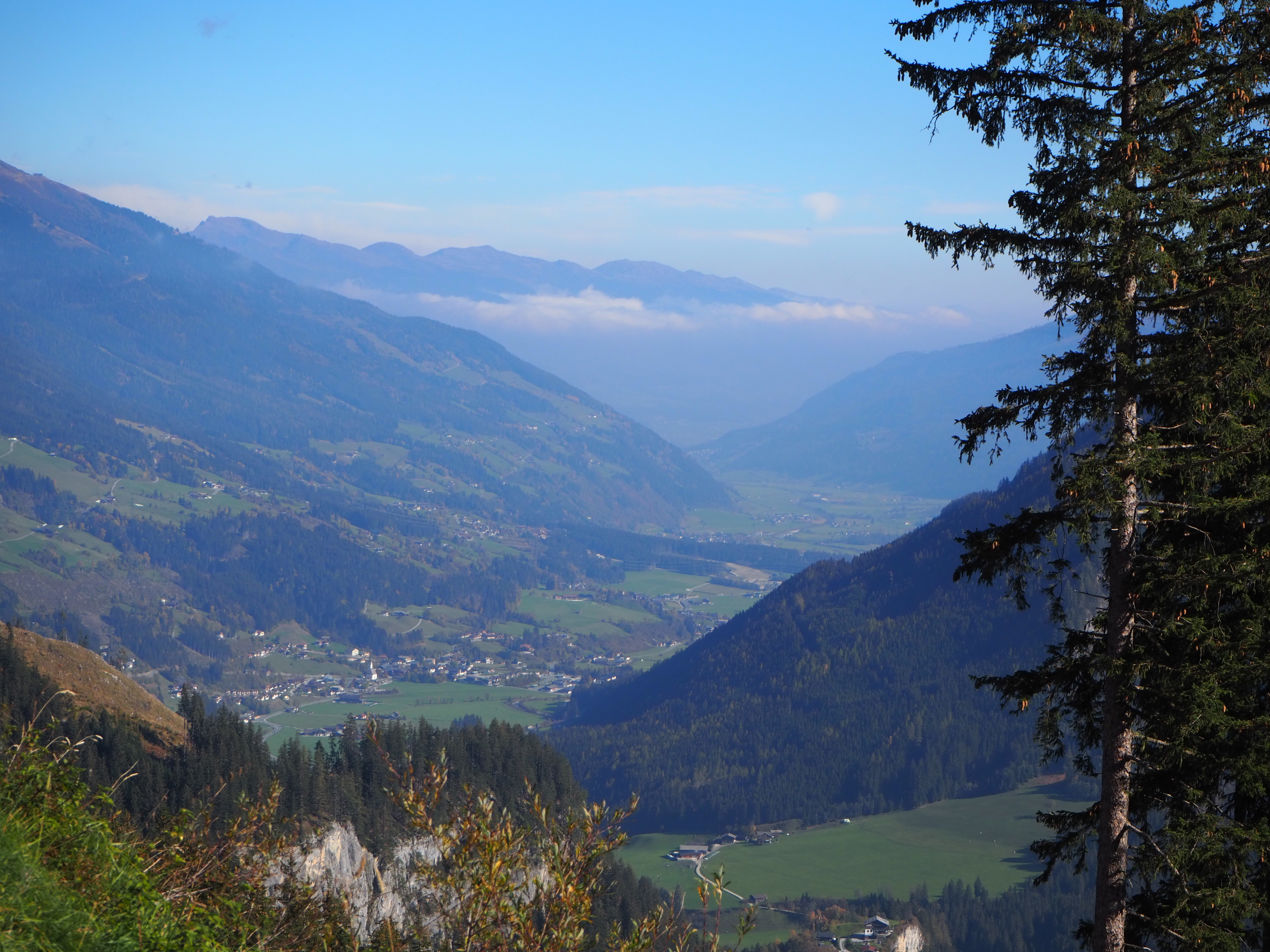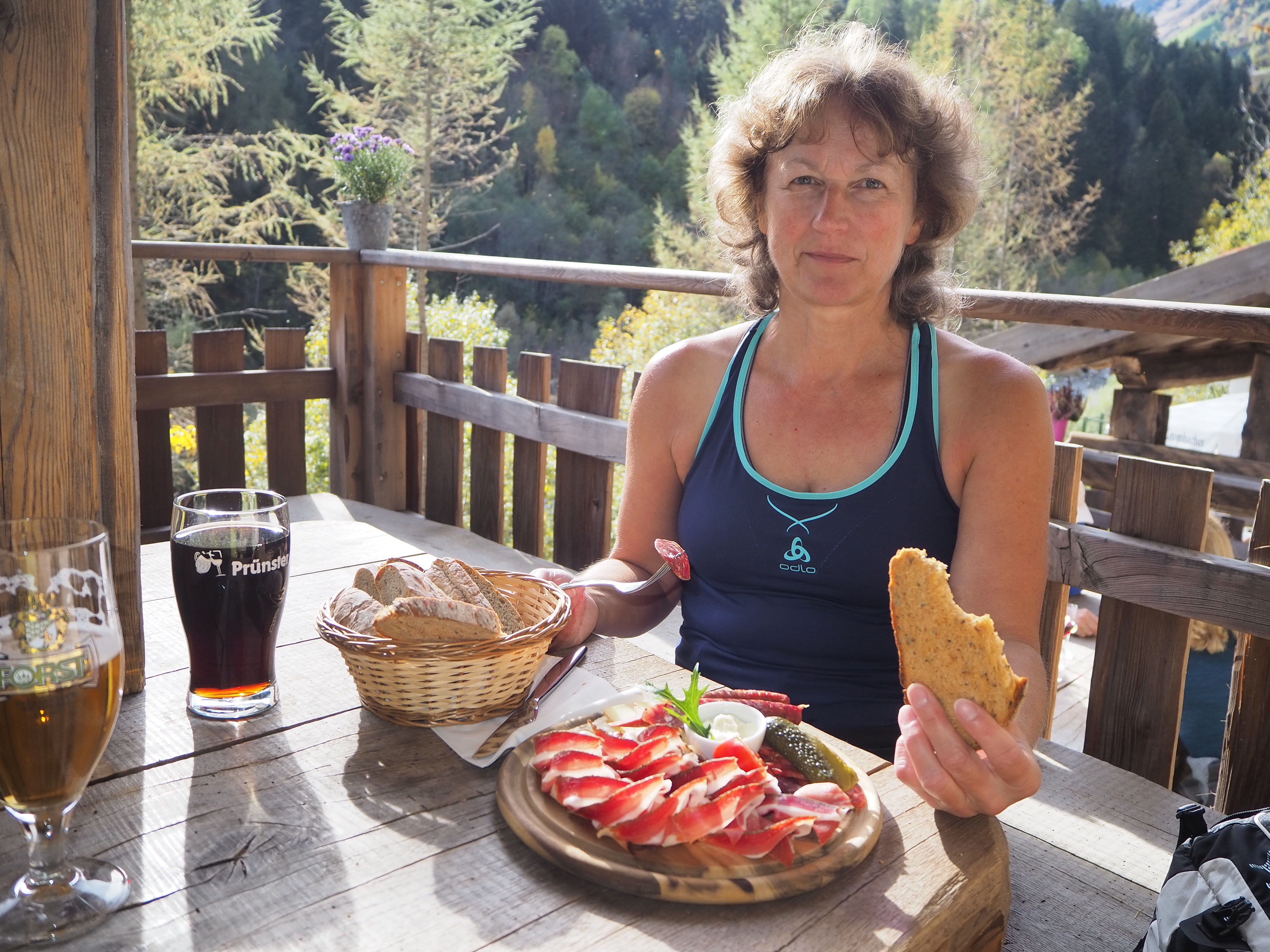 Wanderung auf Weg Nr 1 durch die Passer Schlucht, ein sehr schöner Steig entlang der Passer, überwiegend linksseitig. Wir benötigen hin und zurück ca. 3,5 Stunden (11 km), die „Mittagsrast“ haben wir am Ende des Steiges. Es gibt Bratkartoffeln mit Speck und Spiegeleiern und ein „Schluchtenbrettel“.