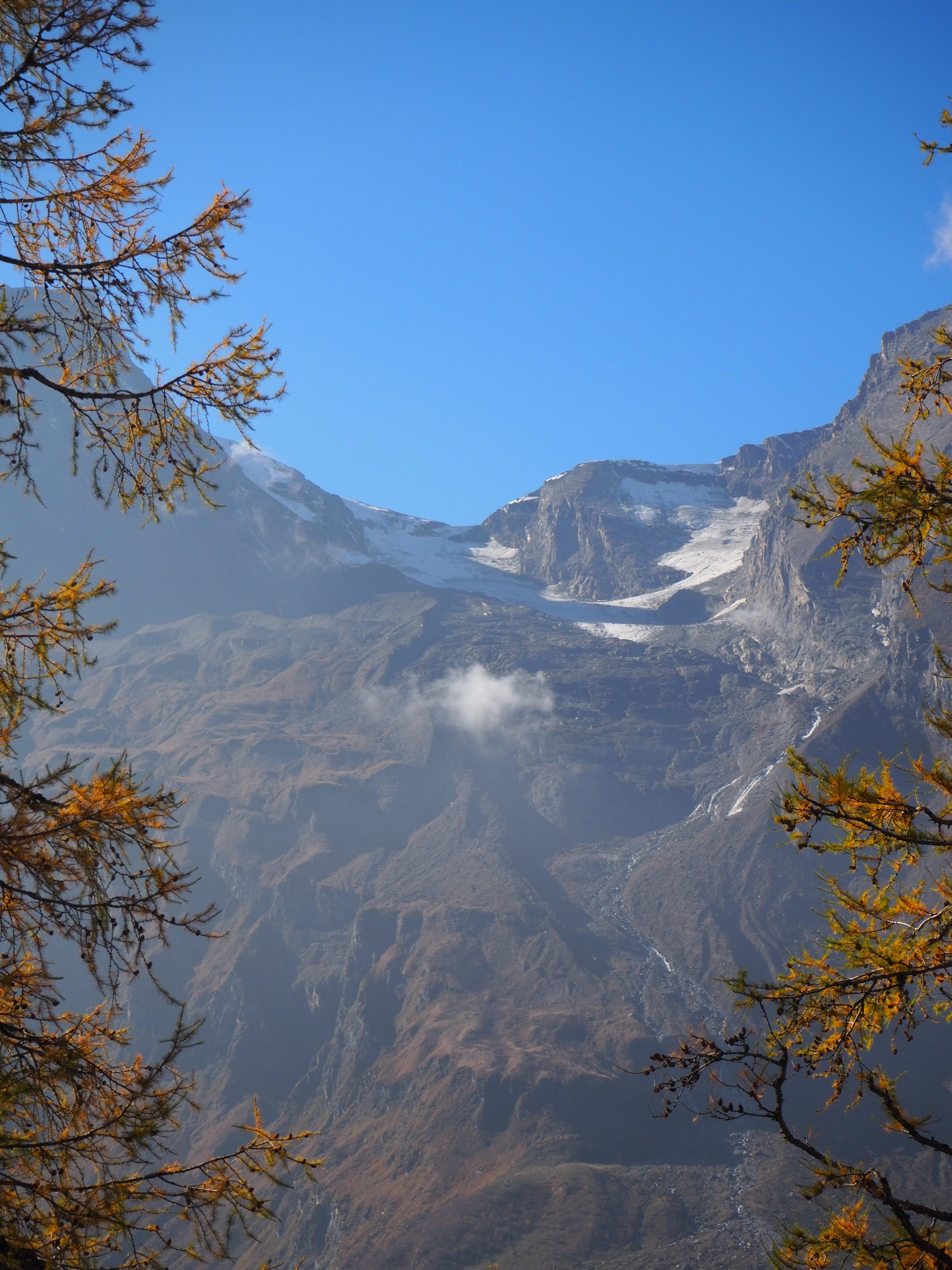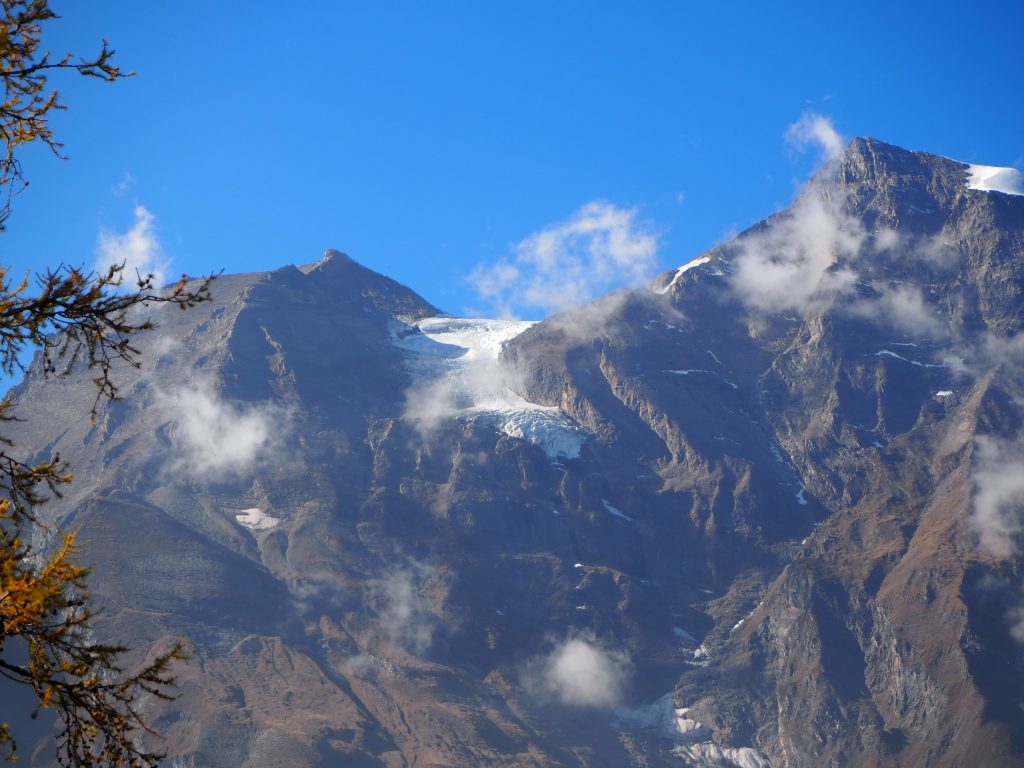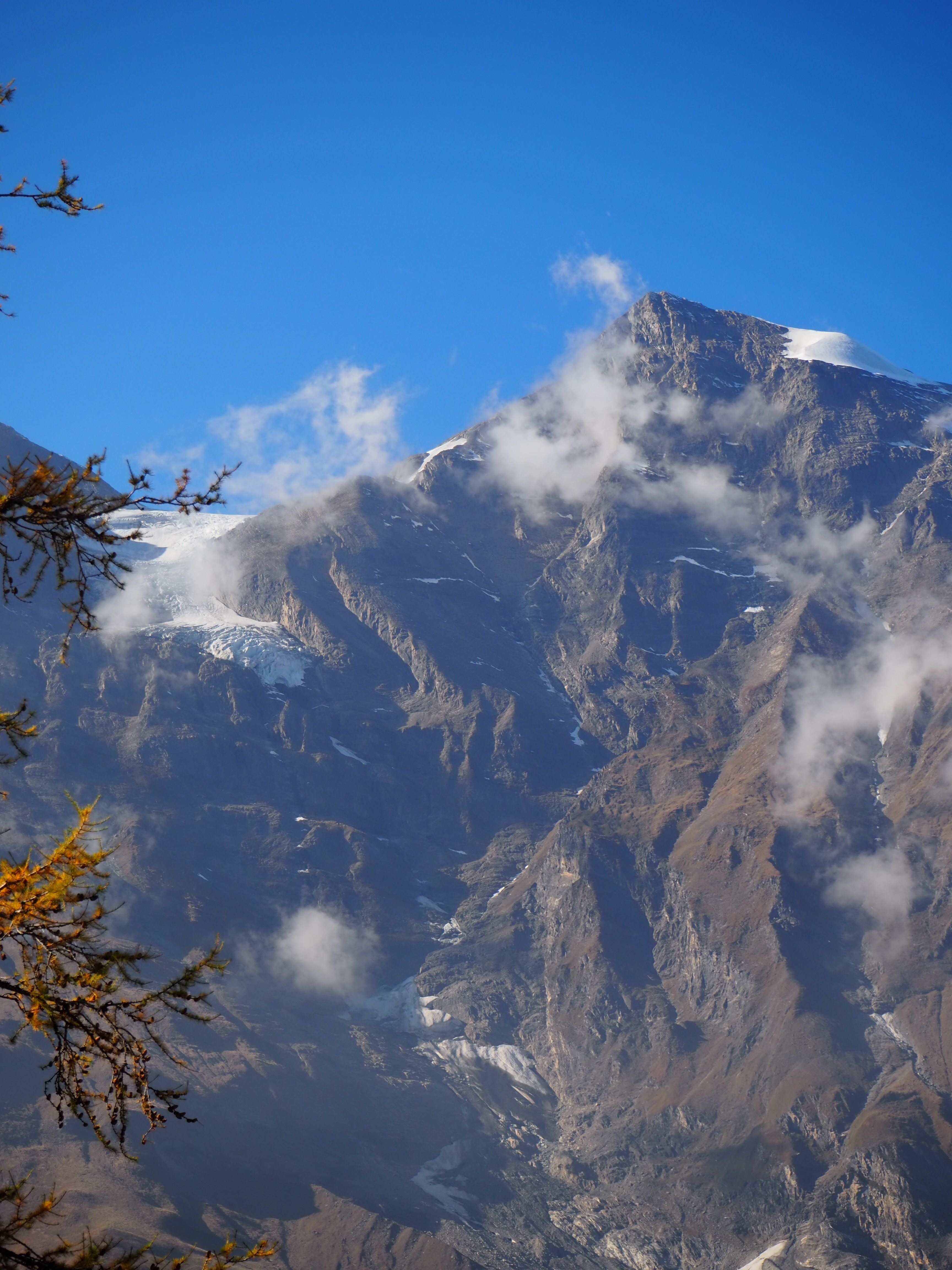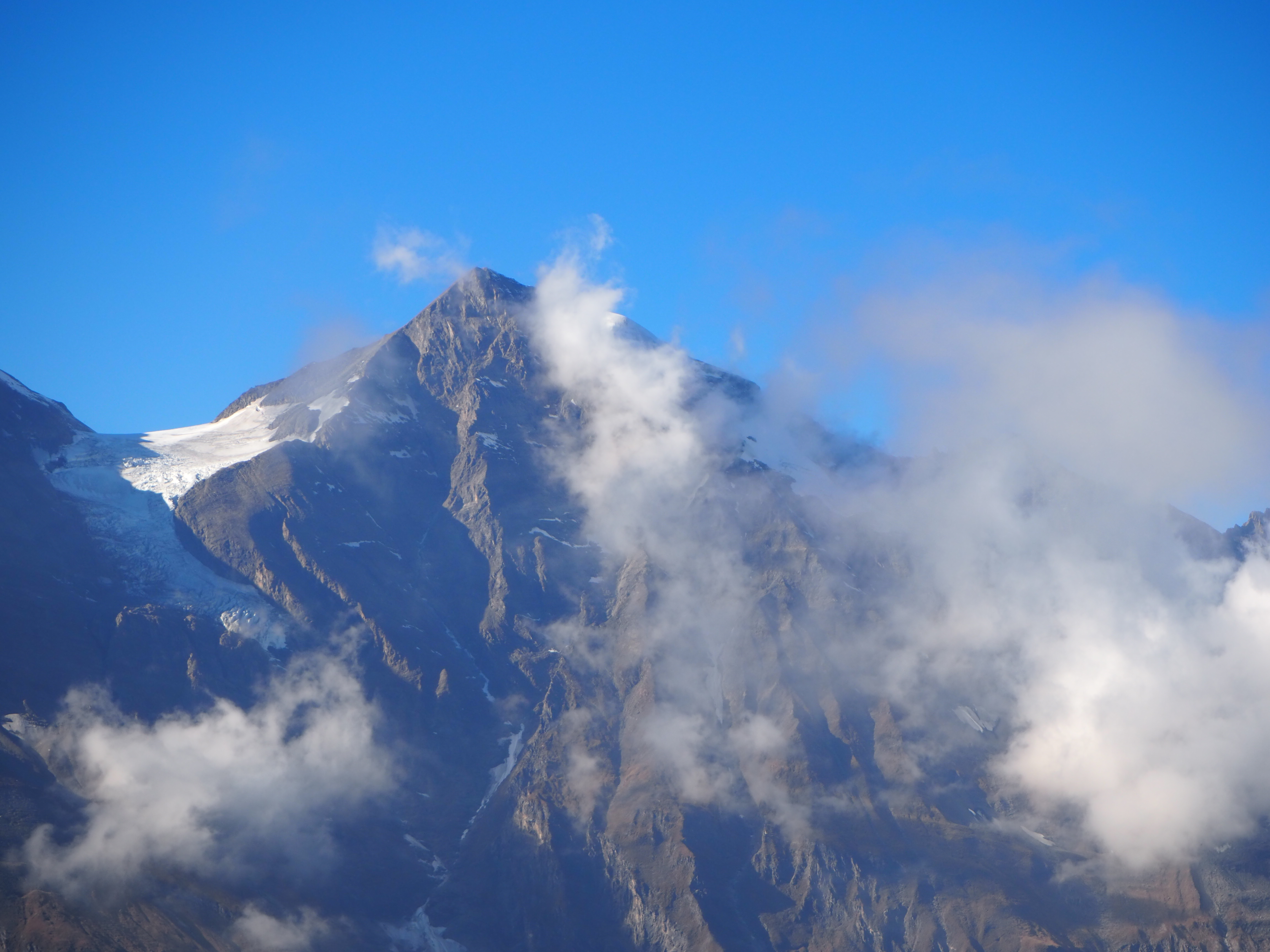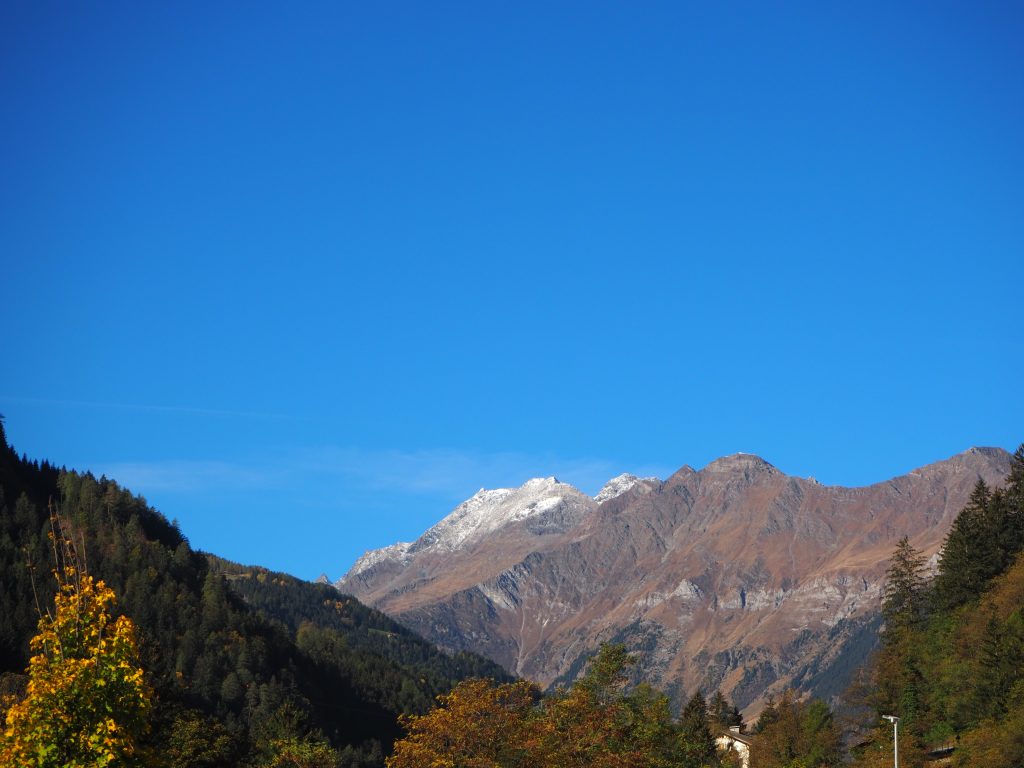 In der Nacht hat es ein wenig geschneit, weit oben. Am Morgen ist der Himmel jedoch wieder strahlend blau.