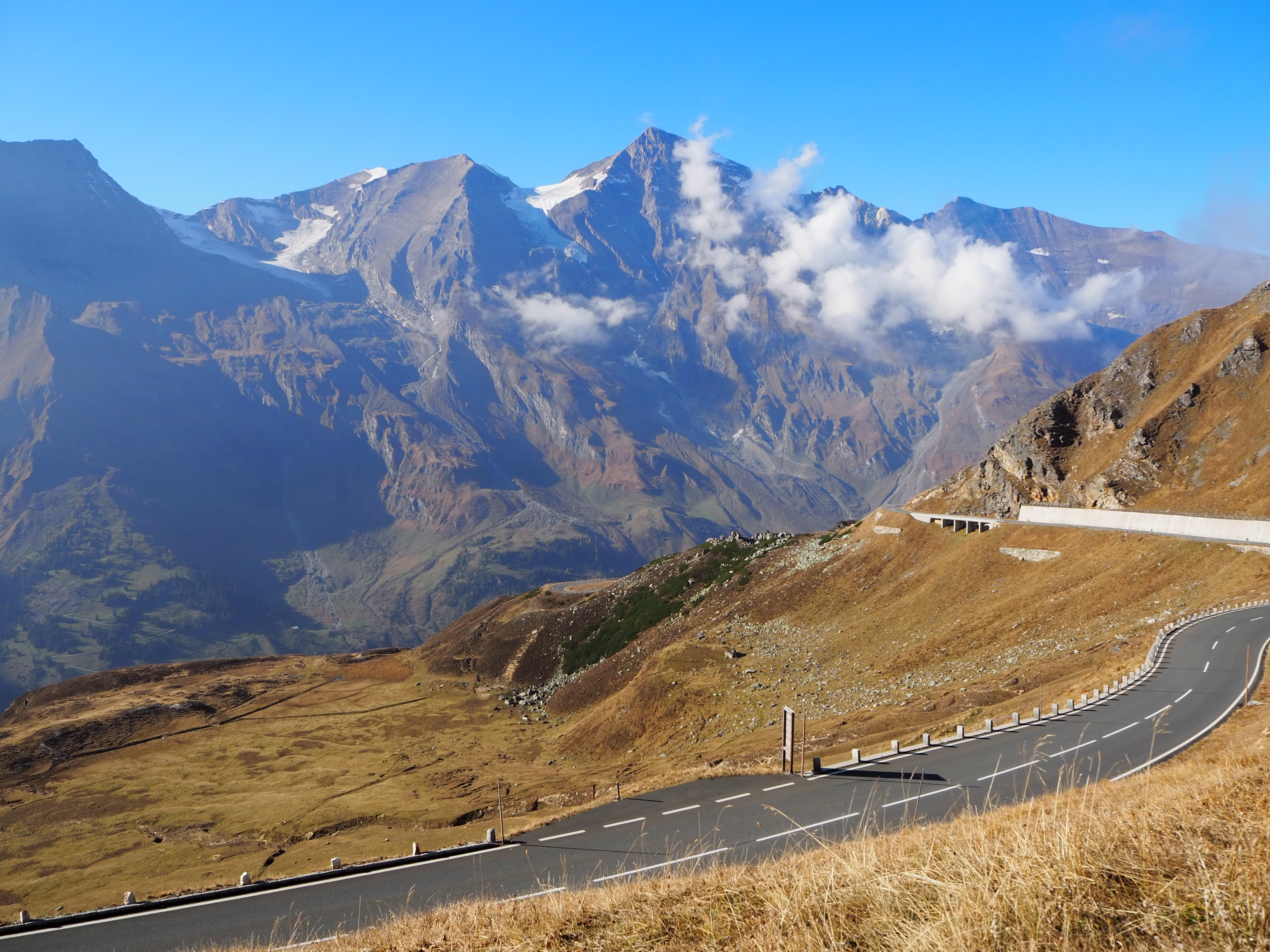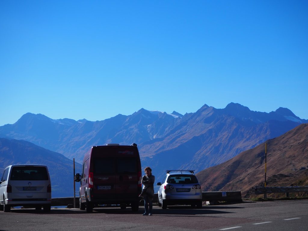 Wir zahlen für die 4 Nächte knapp 120 €, kaufen ein bei MPreis und machen uns auf den Weg ins Virgental zum Camping Haberer-Hof. Wir fahren runter ins Inntal und hinein in Zillertal, über den Gerlospaß (6 €), Mittersill, Zell am See zur Großglockner Hochalpenstraße. Die Straße ist grandios und lohnt die Maut – 26 €. Über Heiligenblut, Lienz und Matrei geht es ins Virgental. Der Haberer-Hof bei Virgen (Niedermauern) ist dann schnell erreicht. Wir haben den kleinen Campingplatz für uns allein. Insbes. die zweite Nicht ist kalt und die Heizung läuft viel; unser Strom reicht für die beiden Tage, zumal die Sonne einige Stunden scheint. (Also zwei Tage autark stellen kein Problem dar.)