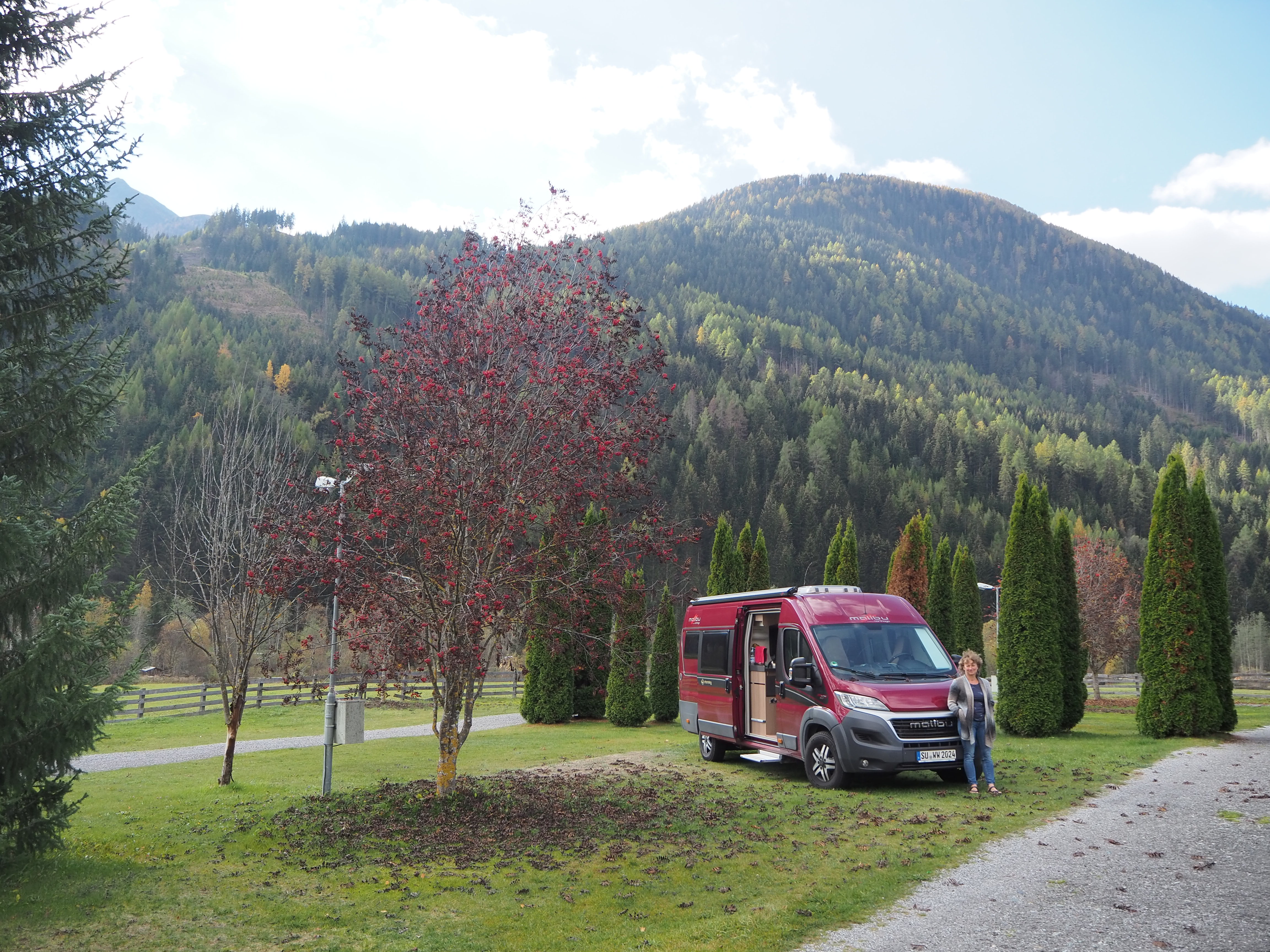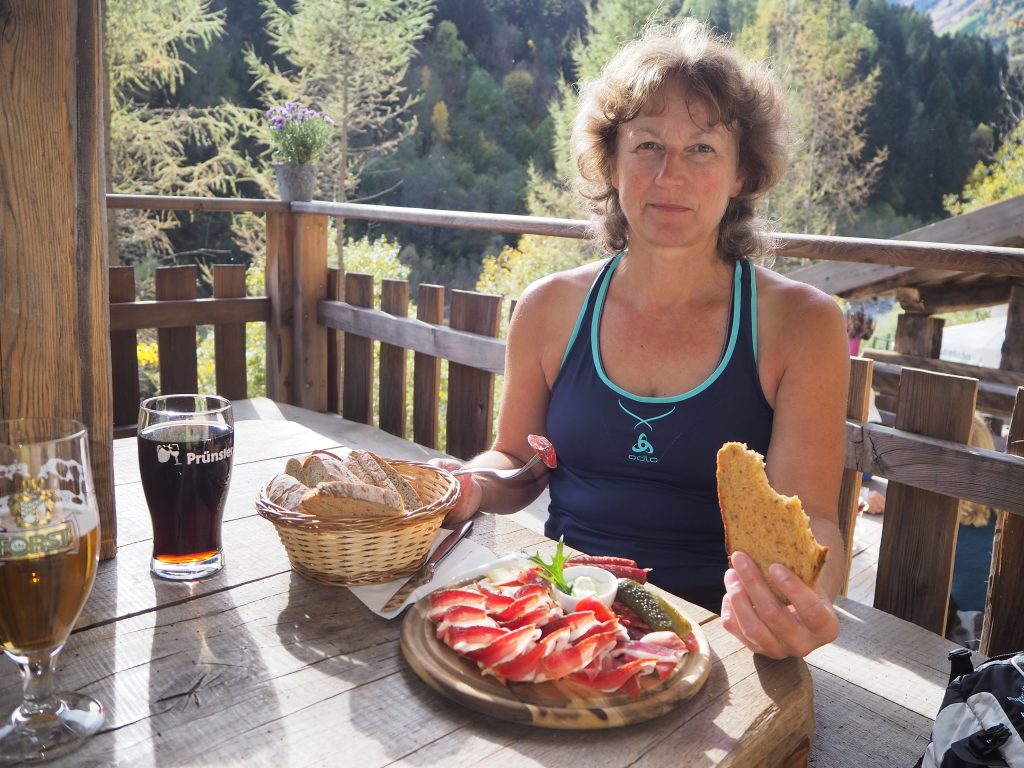 Wir wandern rechts und links der Isel, suchen in Virgen ein Lokal, das offen ist, finden keines. Befragen eine Einheimische, die des Weges kommt: „Ja, das ist brutal …“ – es ist wirklich kein Restaurant offen (Herbstschlaf). Also gehen wir zum WoMo zurück: Es gibt Klöße, Rotkraut und Pfeffersauce – es schmeckt um drei am Nachmittag besonders gut.