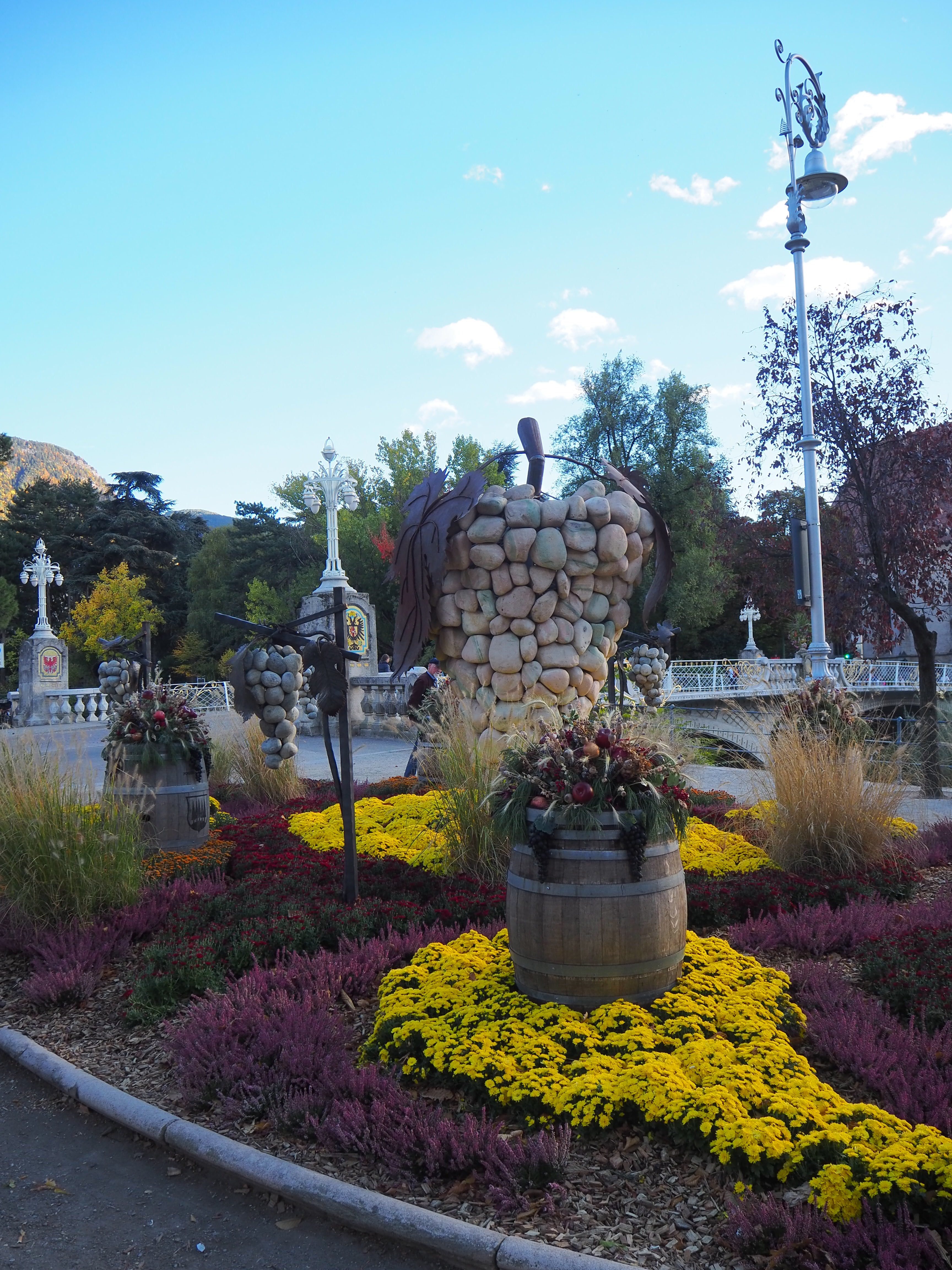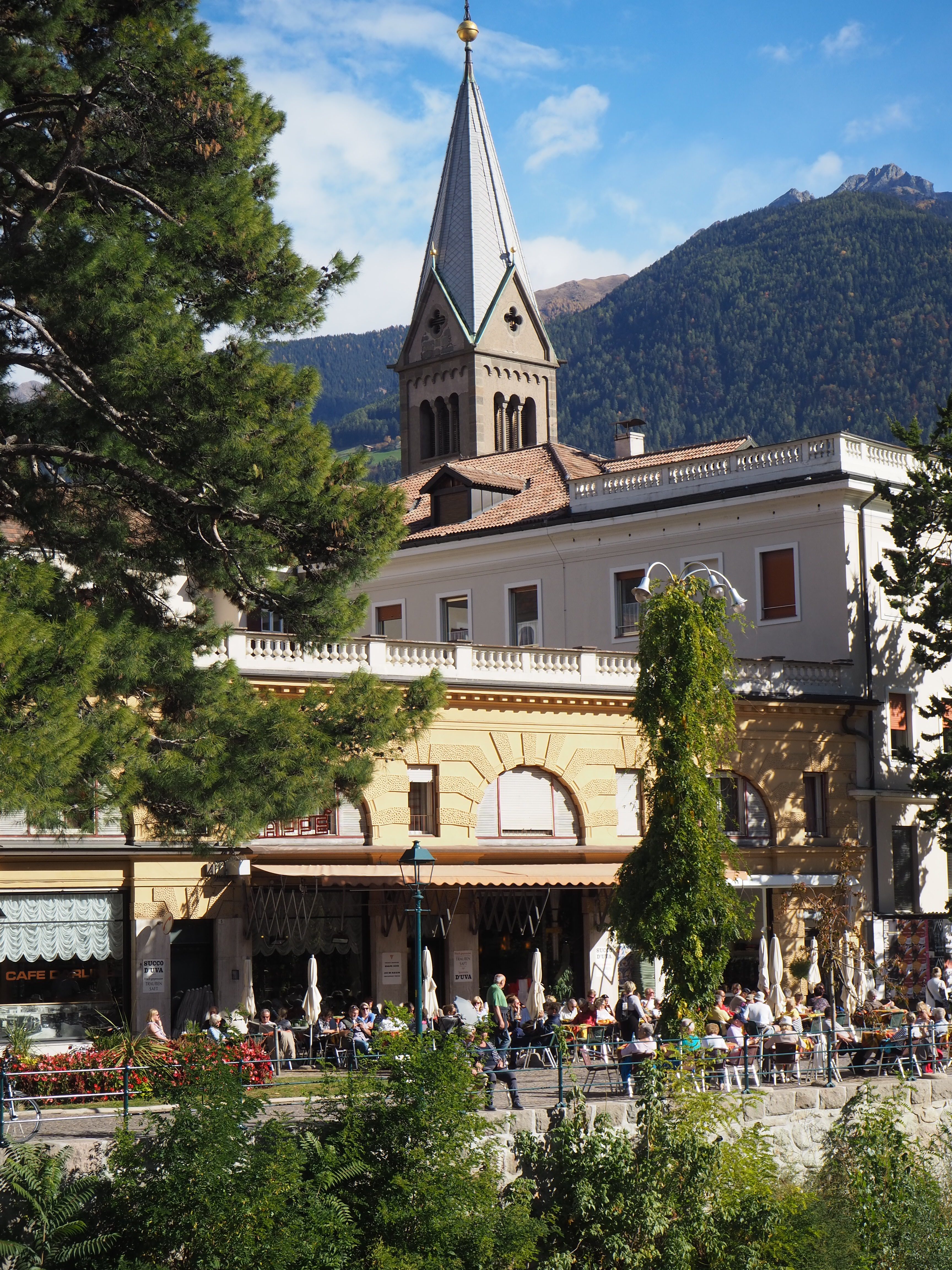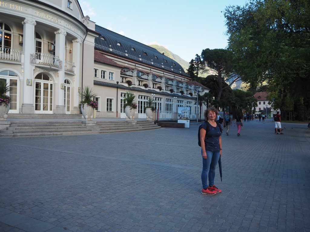 Mal wieder in Meran, der Bus kostet uns hin und zurück 14 € und er benötigt für die einfache Strecke ca. 40 Minuten, mit dem Auto wäre man kaum schneller, hätte aber das Parkplatzproblem. Meran ist nicht so voll wie im Sommer, dennoch gut besucht. Das Wetter ist so traumhaft wie schon die ganze Zeit.