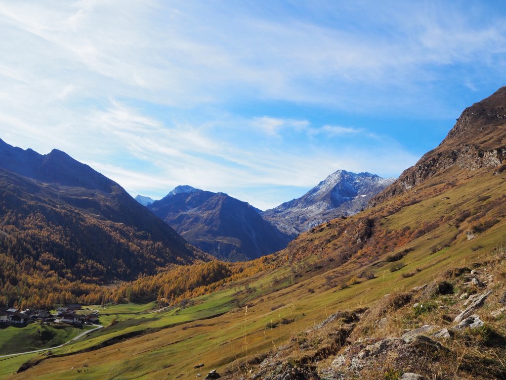 Pfelders liegt auf 1628 m. Der Ort ist nett und noch sehr ursprünglich. Wir nehmen uns vor, beim nächsten Mal beim „Zeppichel“, kurz hinter Pfelders, Richtung Talschluss, im