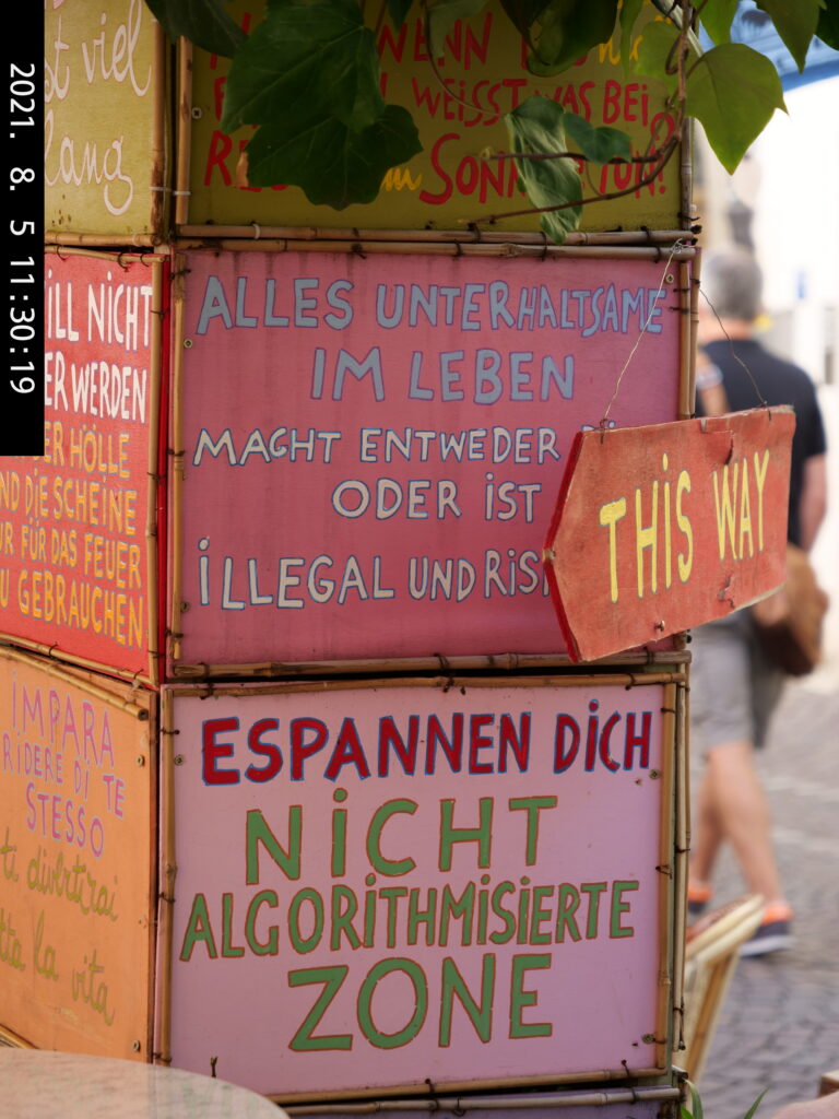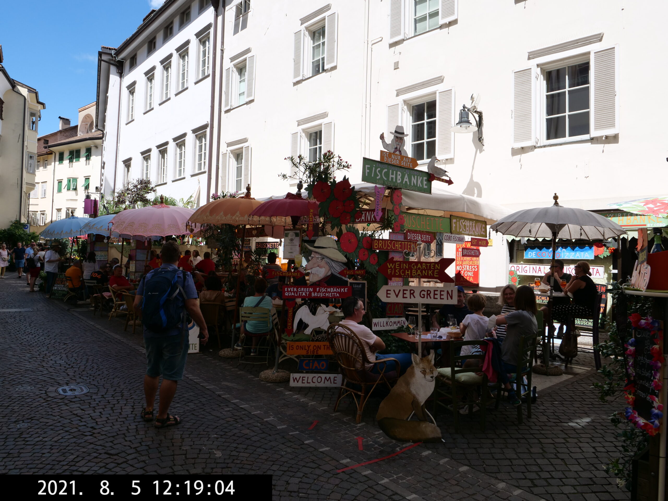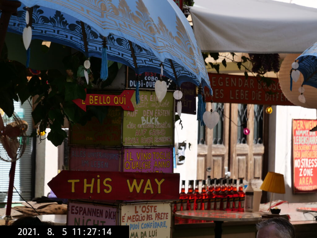 Die Schlange beim „Ötzi“ ist uns zu lang, wir sparen uns darum den Besuch. Wir trinken u.a. einen Veneziano bei der Fischbank – ein Must(?).