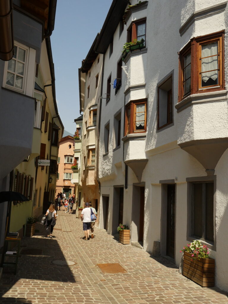 Wir besuchen Bozen – lohnend – die Fahrt mit Bus, inkl. umsteigen, ist bequem. Alle Fahrten auf dem Salten mit dem Bus kosten 1,50 €, die Fahrt nach Bozen ist teuerer. Leider ist die Seilbahn von Jenesien nach Bozen seit Nov. 2020 außer Betrieb, sie soll neu gebaut werden …