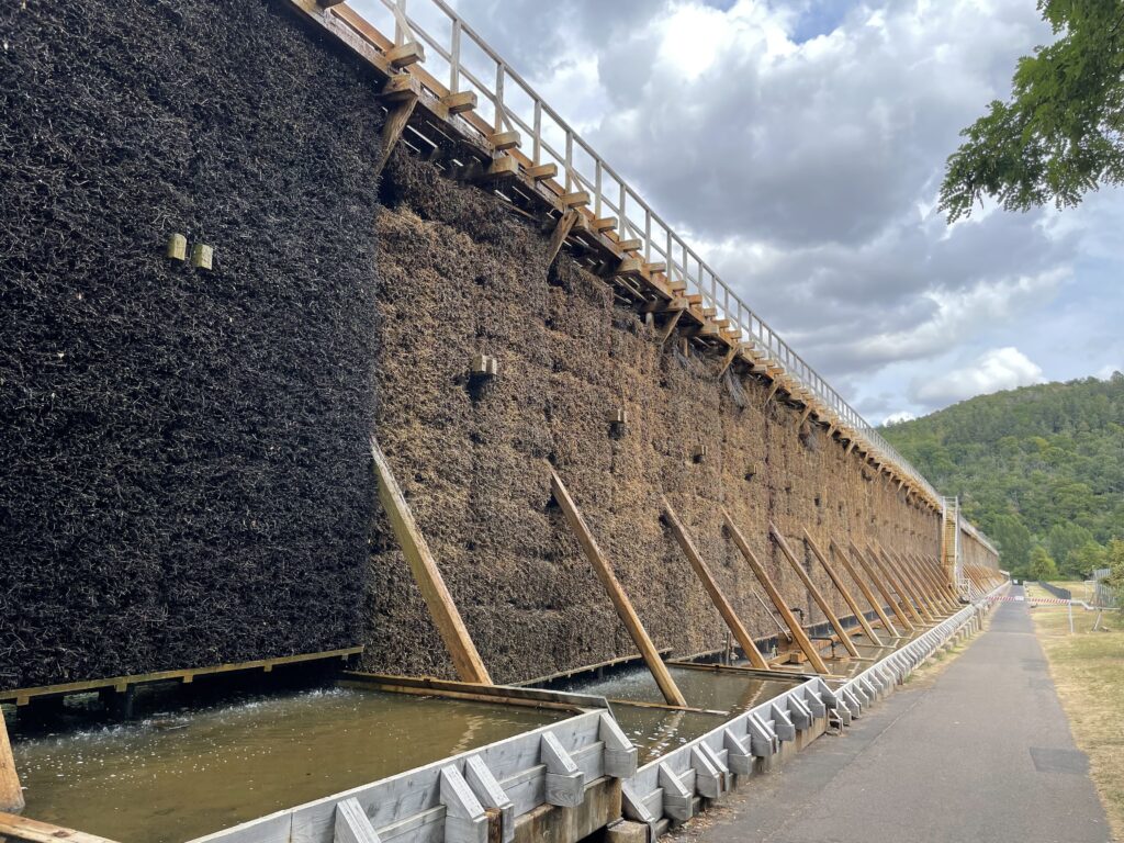 Auf einem großen Feld bei Bad Kreuznach kommen wir auf dem Weg nach Bingen an einem der ehemaligen Rheinwiesenlager vorbei, zeitweise mehr als 100.000 Angehörigen der Wehrmacht wurden hier 1945 gefangen gehalten, mehrere 1.000 von ihnen starben unter den katastrophalen Bedingungen.