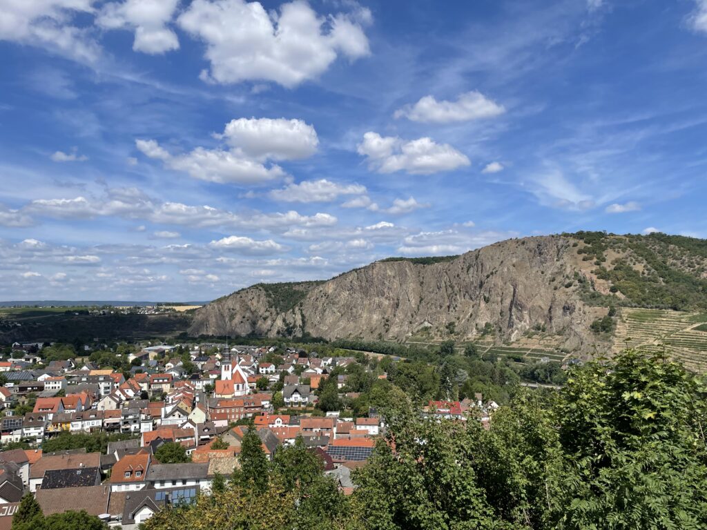 Wir stehen ruhig an der Nahe, 200 m weg vom Schwimmbad, wo wir einen guten halben Tag verbringen, ferner machen wir noch zwei Radtouren – Nahe aufwärts (u.a. Besichtigung der Ebernburg und Bad Münster am Stein) und Nahe abwärts bis nach Bingen.