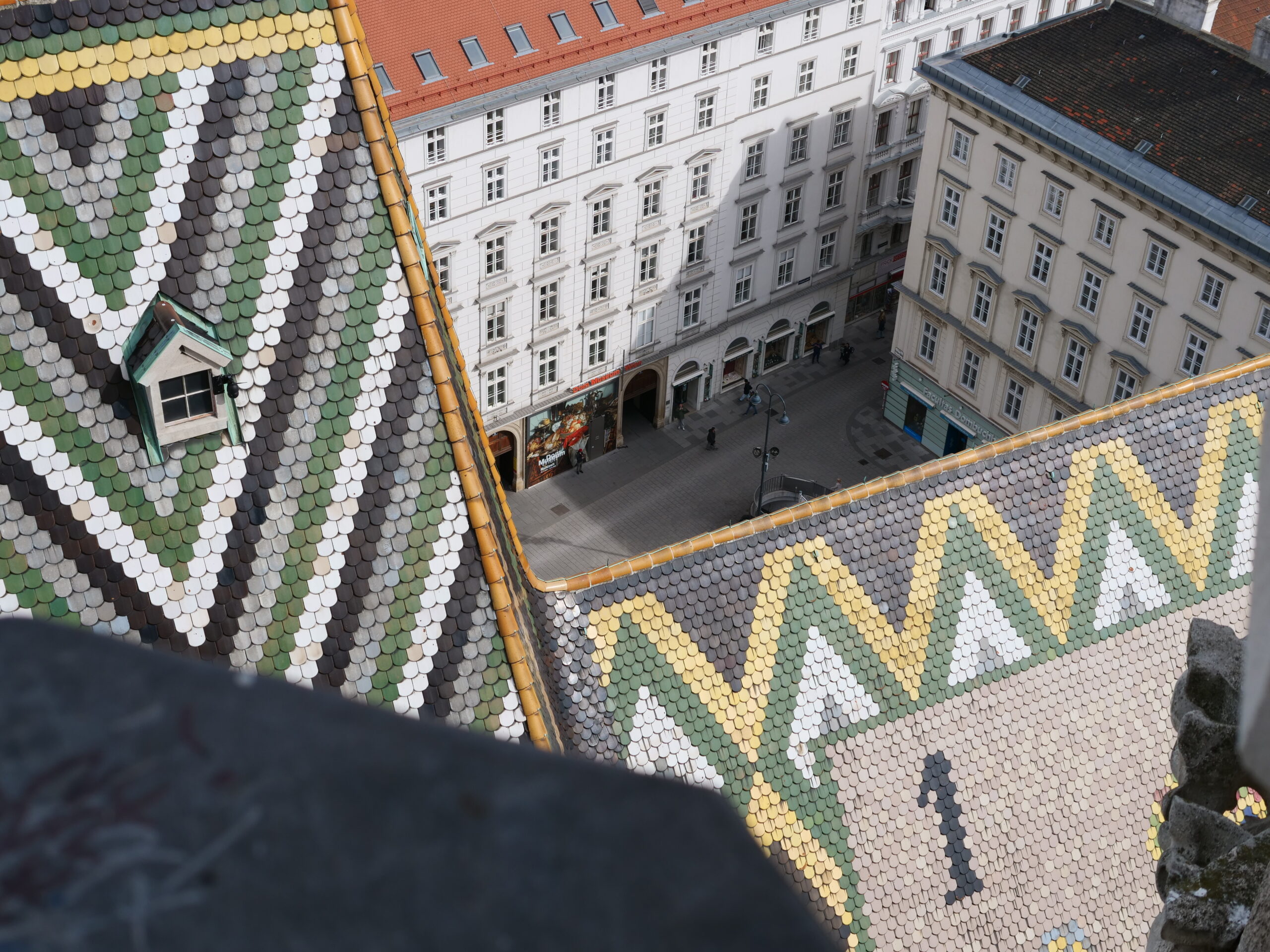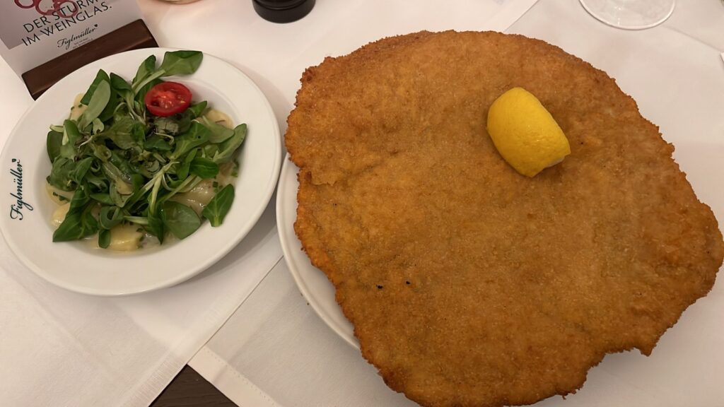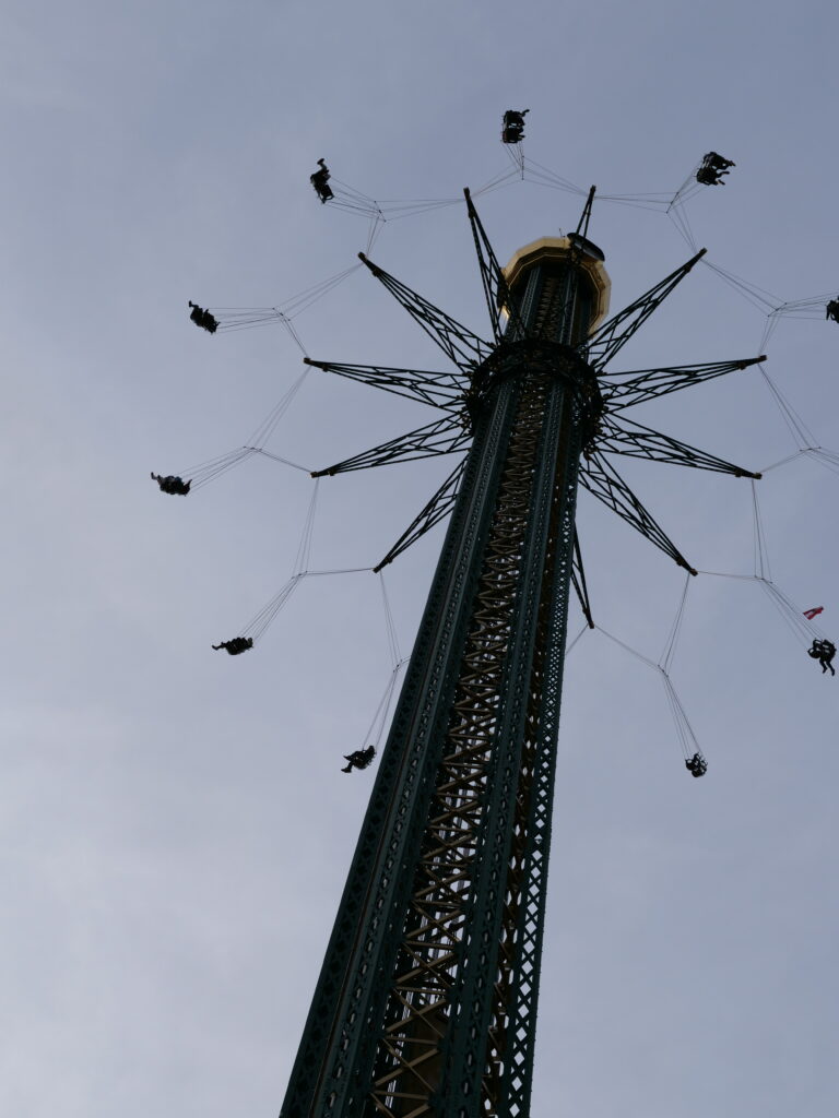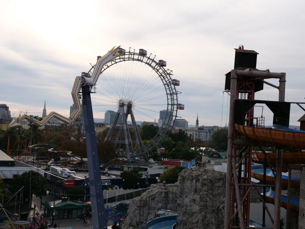 Innenstadt mit Stephansdom – Petra steigt auf den Turm; Prater – wir fahren u.a. ein Runde Riesenrad und essen ganz lecker im Schweizer Haus (von der Kaiser Wiesn haben wir uns ganz schnell wieder verabschiedet), Schloß Schönbrunn – wir buchen die 40-Zimmer-Tour und sehen diverse Gemächer, z.T. noch mit Einrichtungen aus der Zeit Maria Theresias, insgesamt wirklich beeindruckend, wenn auch nicht ganz billig (26 €/P.)