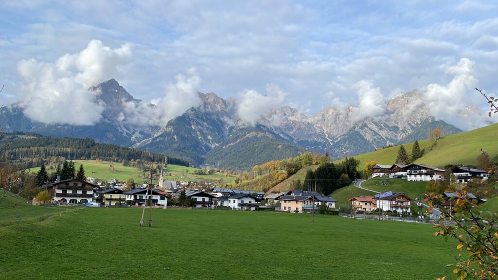 Wir nehmen nur am Anfang die Autobahn – bis St. Michael – und fahren anschließend über Bundesstraßen weiter. Wir kommen durch Eisenerz, Admont, Schladming. Die Fahrt führt durch den Gesäuse Nationalpark. (Lange ist’s her, dass ich hier war: Als Betreuer bei einer Ferienfreizeit der KJG Eitorf auf Schloß Kassegg, ca. 1972?)