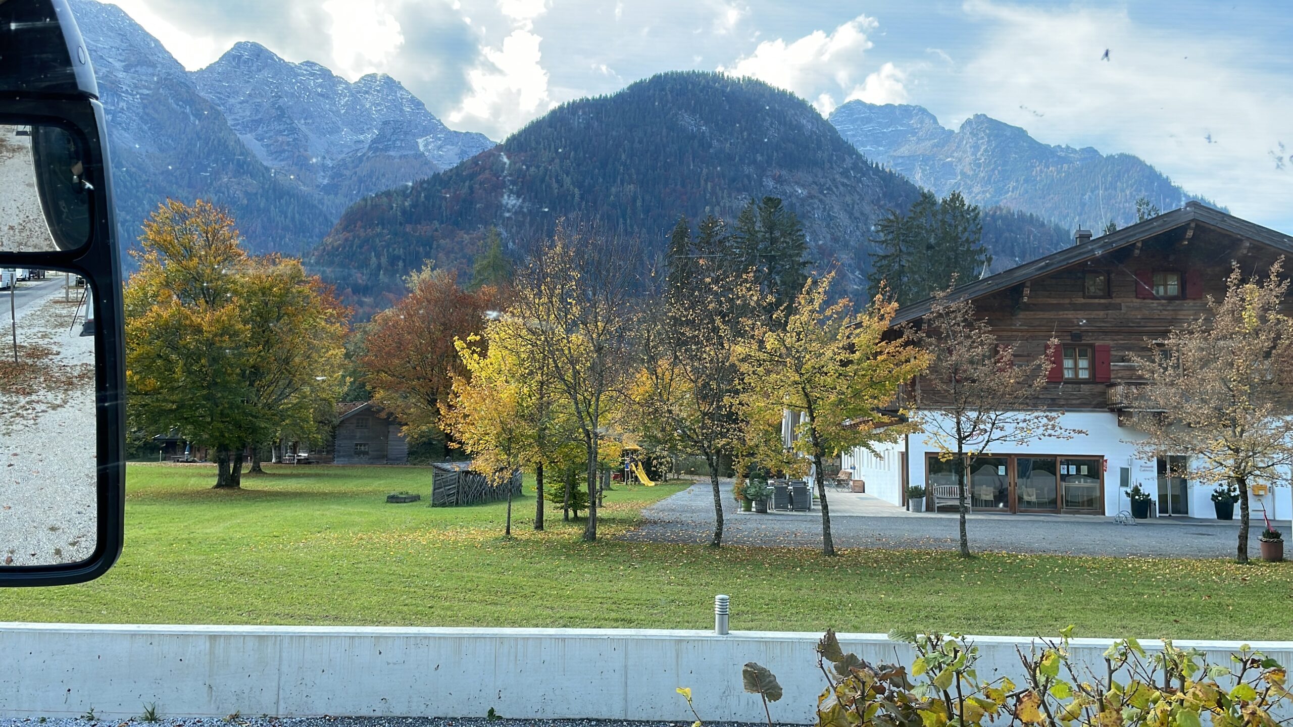 Wir stehen mit Sicht auf das Steinerne Meer, nachts sehr ruhig, tagsüber wenig Verkehr auf der „Passstraße“. Außer uns stehen in der ersten Nacht noch zwei weitere WoMos auf’m Platz, der eine parkt direkt neben uns ein – ein „Kuschelcamper“!