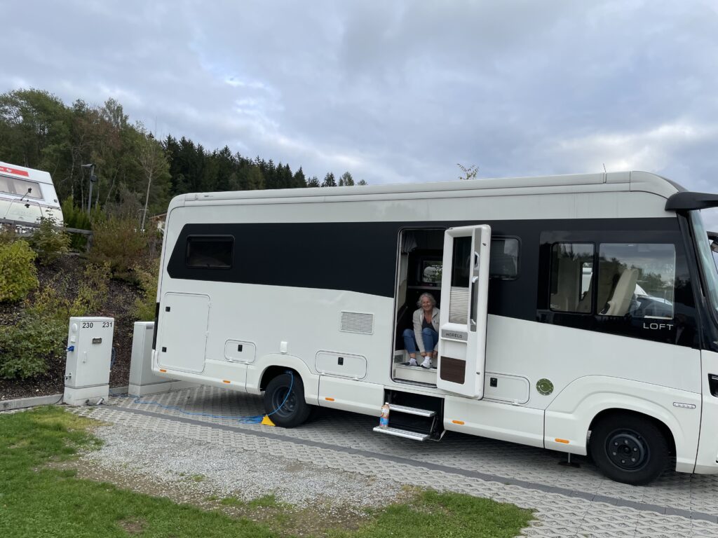 Nach kurzer Fahrt von Maria Alm nach Lofer, sind wir gegen Mittag am Grubhof. Wir „besetzen“ einen schönen Standplatz nahe am Hauptgebäude (Sauna) und einem der vier Sanitärgebäude.