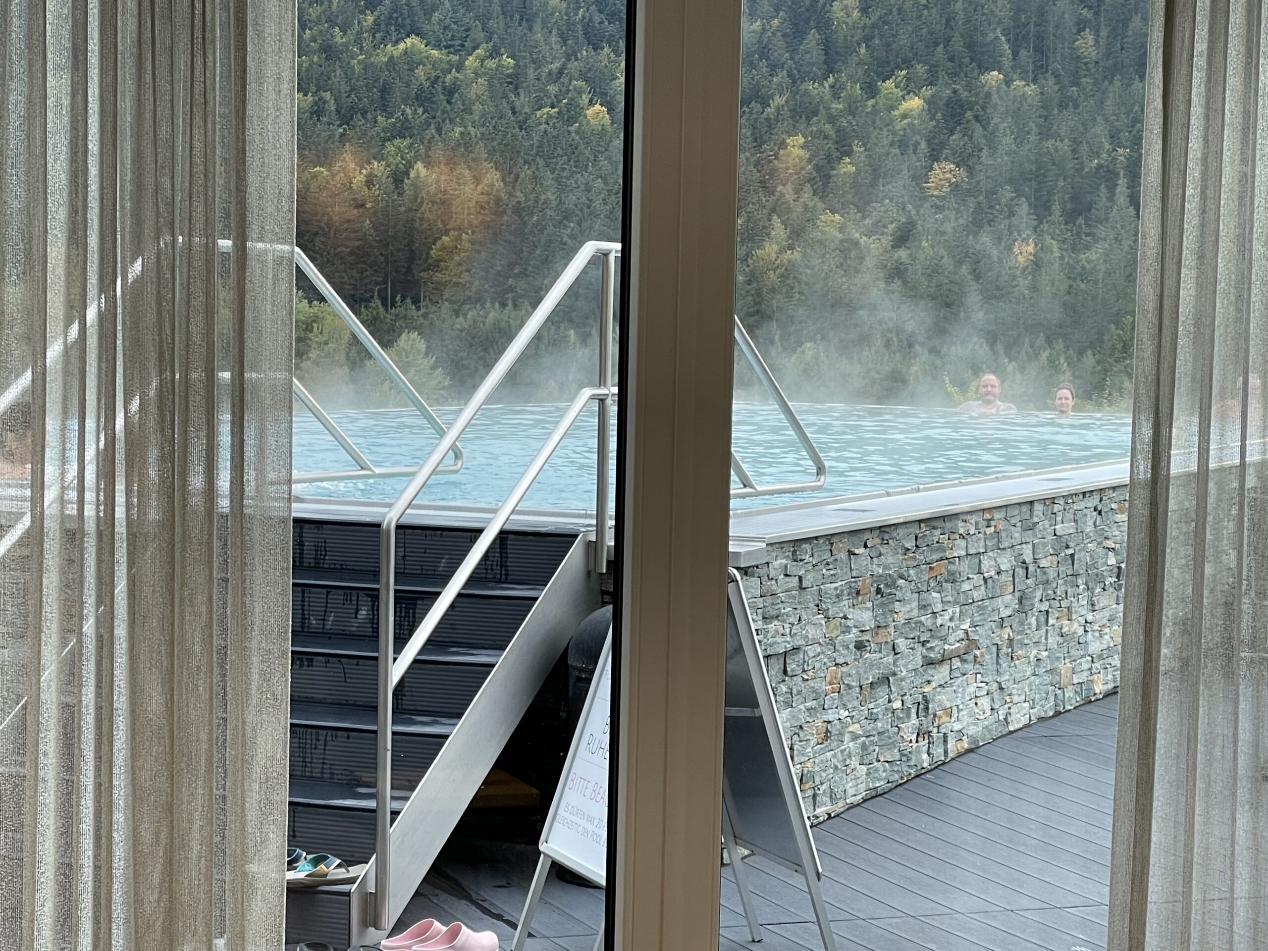 Den Infinity-Pool beim Camping nutzen wir jeden Tag, am 3.10. legen wir dann noch einen sehr entspannten Saunatag ein – auch mal wieder nett.