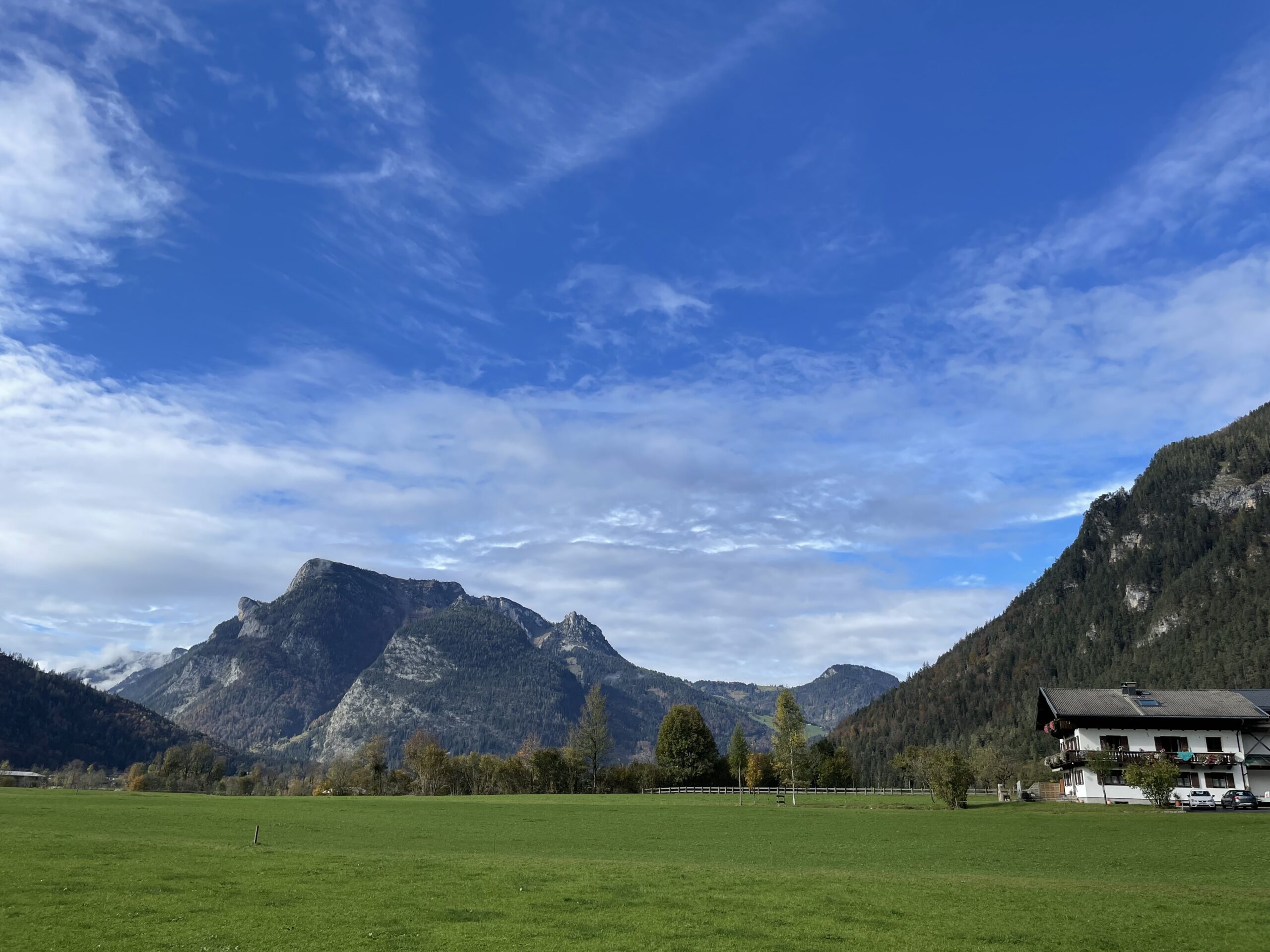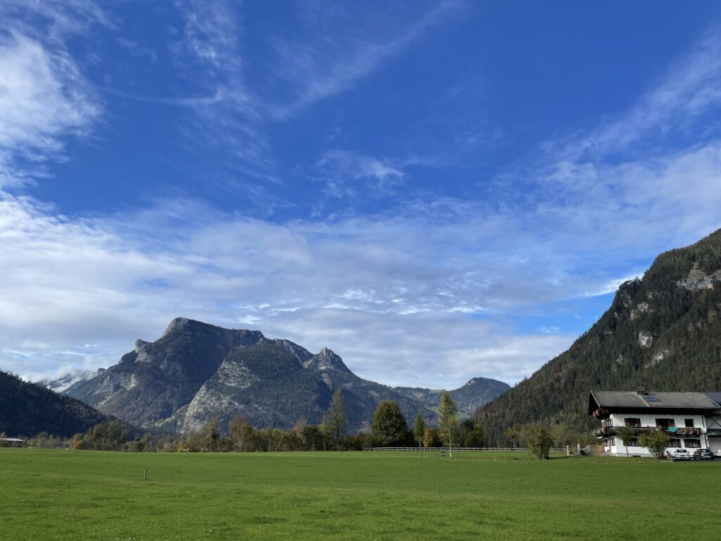 Freitag unternehmen wir eine kleine Wanderung: Faistau und Gasthof Krepper, der leider geschlossen hat – Herbstpause. (Beim nächsten Mal unbedingt dort essen: Kaiserschmarren und Omelette mit Pilzen.) Über den Triftsteig kommen wir zurück nach Lofer. (Triftsteig: Seitenwege – früher auf beiden Seiten – der Saalach, auf der die Holzknechte gingen, die dafür sorgten, dass die Stämme der Holztrift auch wirklich in Bad Reichenhall, wo sie als Brennholz für die Sudpfannen gebraucht wurden, ankamen.)