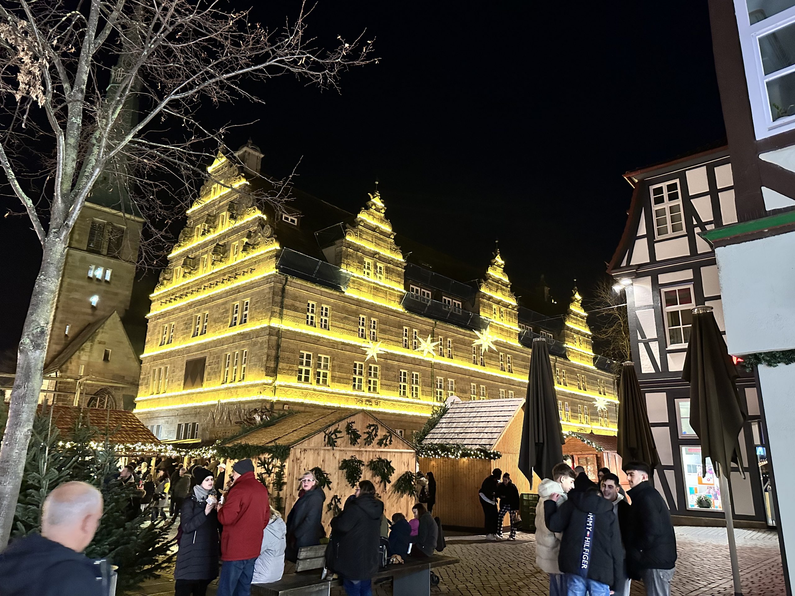 Ich schaue mir auch das Glockenspiel am Hochzeitshaus an. – „Das schlossartige Gebäude aus Sandstein mit vielen Ornamenten und Giebeln wurde Anfang des 17. Jahrhunderts als Fest- und Feierhaus der Bürgerschaft errichtet. Eine Besonderheit ist sein Glockenspiel.“