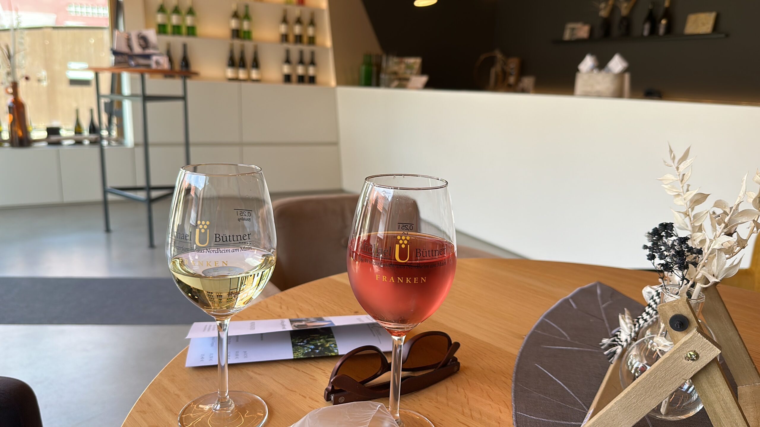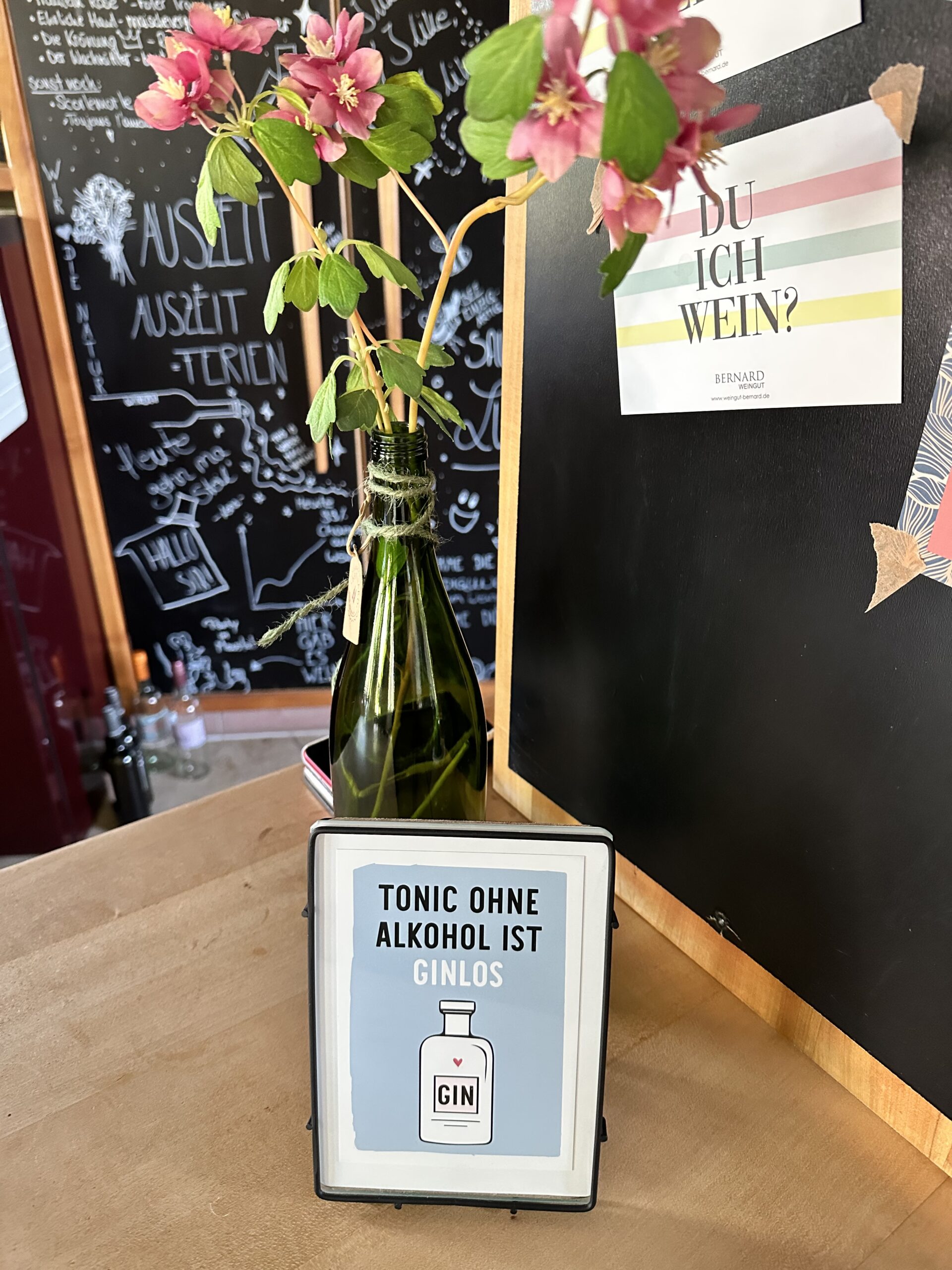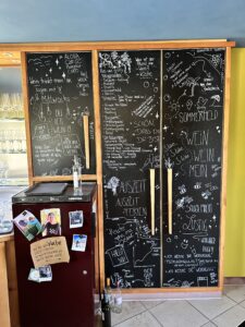 In Nordheim trinken wir beim Winzer Michael Büttner jeder einen (bis zwei) Schoppen – Lieblingsmensch – sehr lecker.