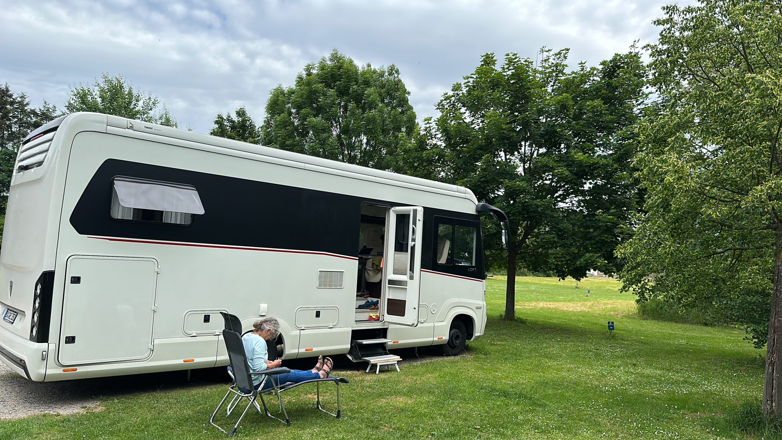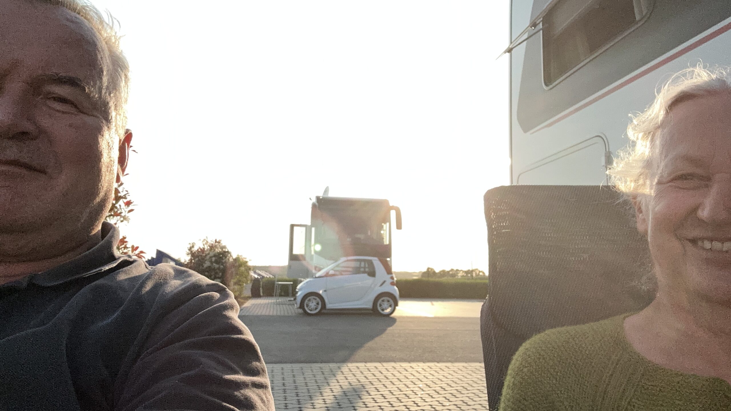 wo wir ca. um 23.30 Uhr eintreffen. Am 26., Freitag, morgens haben wir dann den Reparaturtermin bei Morelo, leider kann die Konstruktion nicht ganz in den Auslieferungszustand versetzt werden, sie funktioniert aber zumindest wieder richtig und die untere Stufe kann wieder betreten werden. Zum Glück denke ich daran, noch bei Caravantechnik Meier anzurufen und bekomme einen Termin am folgenden Pfingstdienstag. Das Touchpanel für die Steuerung der Hubstützen „spinnt“ manchmal. Man überrascht mich mit der Aussage, das Problem sei bekannt und ein Austausch notwendig. (Die Firmware des Gerätes/die Software ist fehlerhaft. Warum der Fehler nach einem Jahr erst das erste Mal auftrat und überhaupt nur ca. 4mal ist unklar.) Fazit: Neues Panel, 300 € reichen nicht, Glück im Unglück – wir haben noch zwei Wochen bis zum Ablauf der zweijährigen Gewährleistung, Tausch und neues Display sind für uns kostenlos.