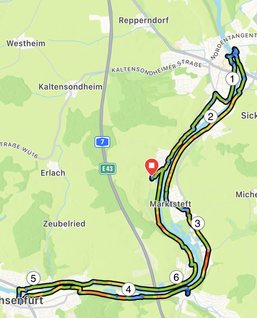 Am Samstag dann die – obligatorische – Radtour: Kitzingen, Marktsteft – mit dem ältesten Hafen Bayerns, Marktbreit und Ochsenfurt liegen auf der Strecke. Auf der einen Mainseite hin auf der anderen zurück, eine nette Tour.
