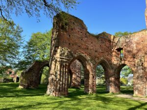Wir laufen in der Stadt herum, diesmal mit Führer, fahren mit dem Rad nach Wieck und besuchen dort auch die Klosterruine Eldena, die sich in vielen Bildern von Caspar David Friedrich wiederfindet. Neben der Stadtführung – lohnend – besuchen wir noch das Caspar David Friedrich-Zentrum und das Landesmuseum, die Bildersammlung dort schaffen wir aber nicht mehr, es reicht dann aber auch.