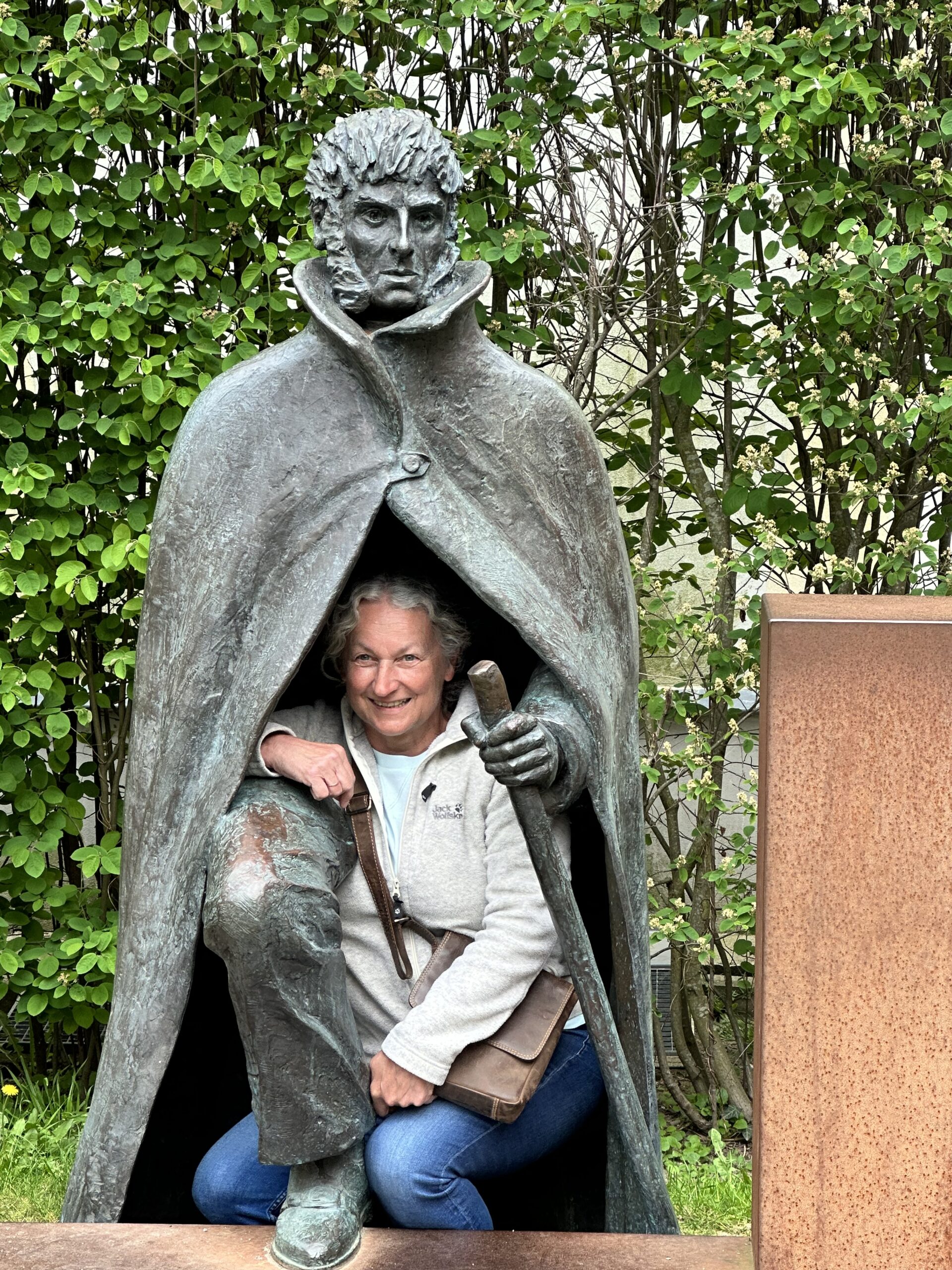 .. den Lauscher in Marktbreit. („Der Lauscher an der Wand hört seine eigne Schand‘.“) Skulptur von Karl-Henning Seemann. (+ 23-01, Löchgau).