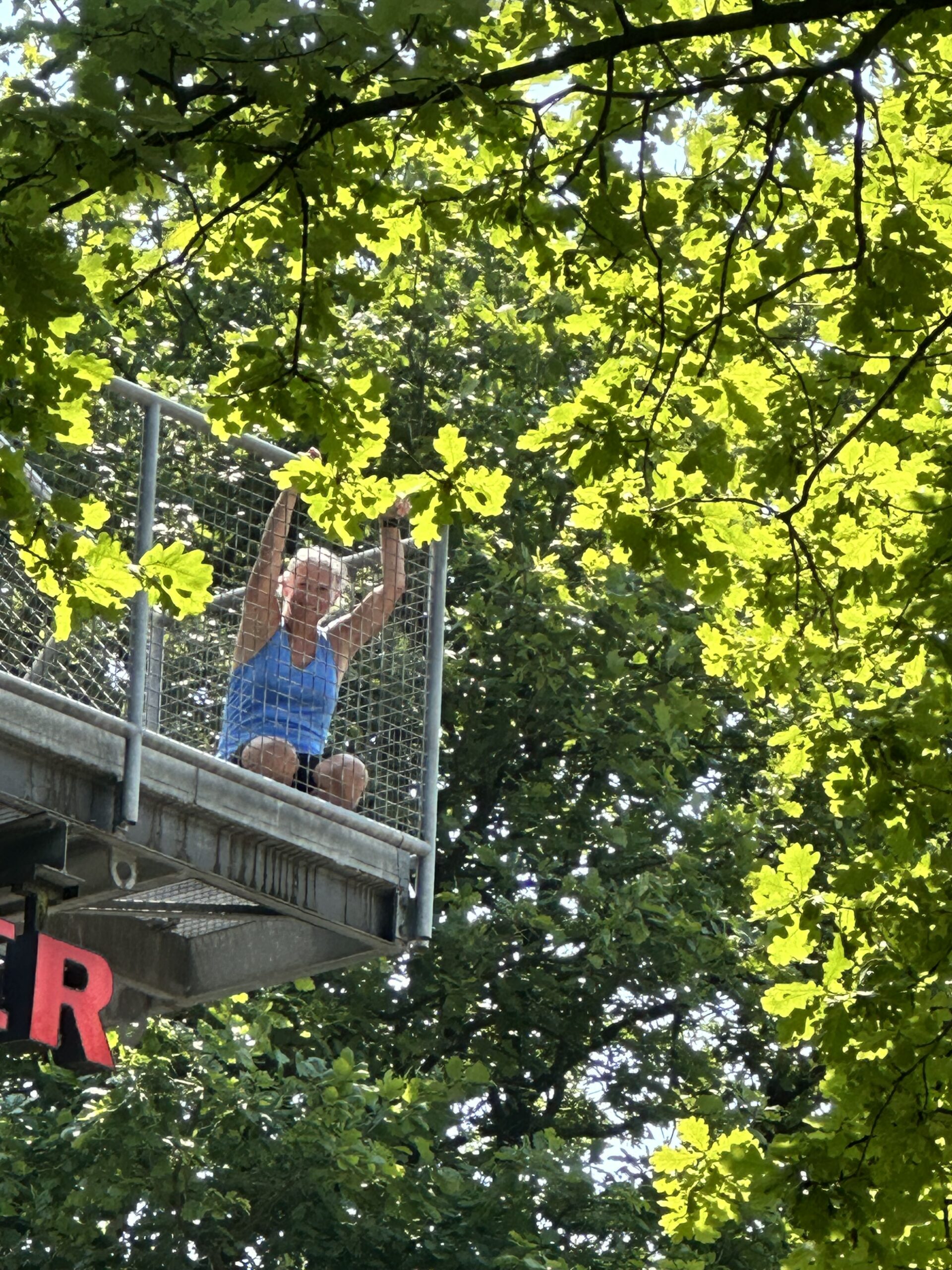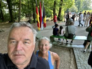 Wir fahren u.a. mit dem Rad in die Stadt, durch Belgien – versäumen es nicht, belgische Fritten zu essen – und die Niederlande. Sehr angenehm – auch bei die Hitze – die Strecke durch den Stadtwald Aachen.
